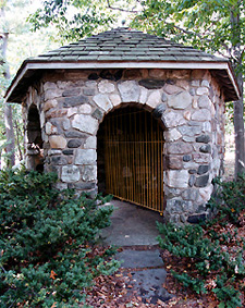 The "Little Stone House" dedicated in 1937, located on Northeagleville Road, across from Swan Lake.