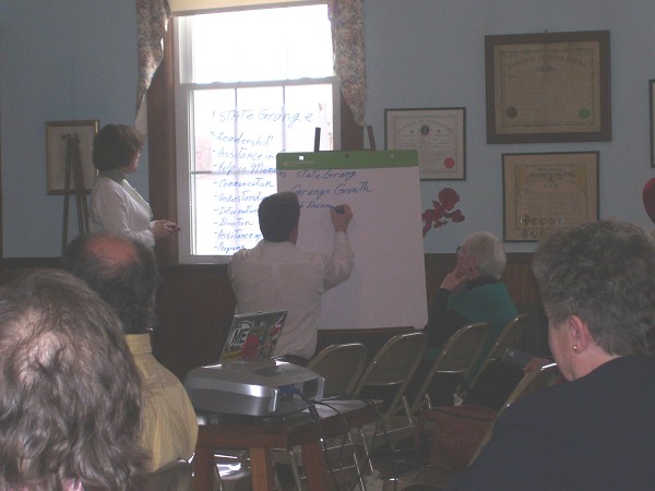 One of the key areas focused on throughout the day was the role of each of the different levels of the Grange - Community (local), Pomona (county), State and National - and how each level interacts and supports the others. Hunt used a series of presentations and exercises to illustrate the benefits each level can experience by working together.