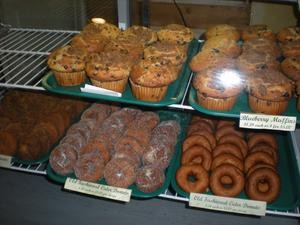 Trays of fresh baked goods kept coming out, piled with Elena’s pies, muffins, cookies and maybe the best cider donuts on Earth. She makes three kinds of those — cinnamon, sugar coated and plain. Theresa went back the next day for a dozen.