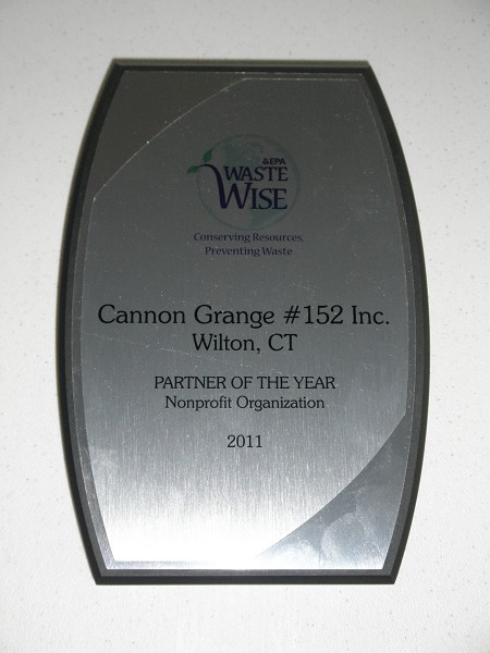 | DECEMBER 30, 2011 -- Cannon Grange of Wilton, Connecticut has been nationally recognized as a “2011 WasteWise Partner of the Year” award-winner by the U.S. Environmental Protection Agency (EPA) for outstanding achievements in recycling and resource management.