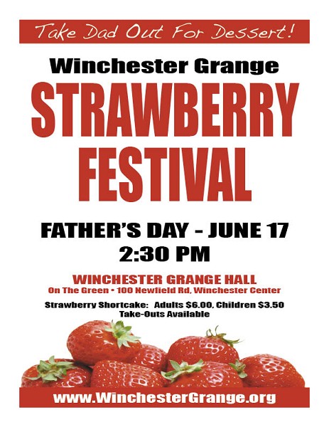 | JUNE 11, 2012 -- "Take Dad Out For Dessert" on Father's Day, June 17, when Winchester Grange presents its annual Strawberry Festival at the Grange Hall on the Green in Winchester Center.