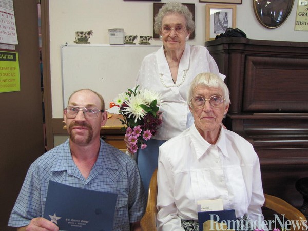 Marion Emmons and Ruth Rosebrooks were honored with 70-year certificates at the Ekonk Grange in Sterling on July 21. The Community Citizens Awards program also recognized Bruce Lindberg for 55 years, and Mandy Dubay, Sandy Eggers, Mason Gray, Cindy Henry and Beverly Pepin for 25 years each.