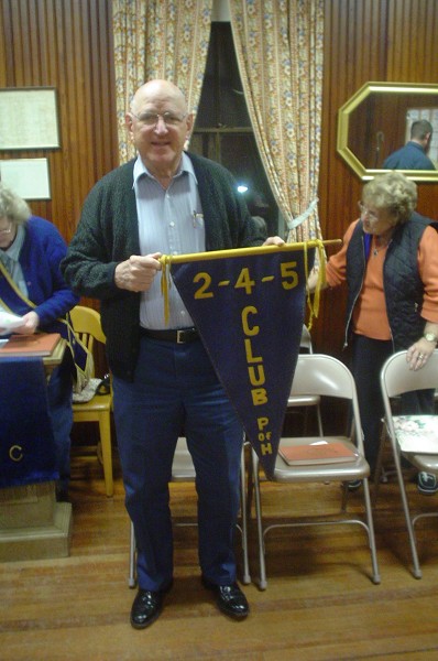 After a few meetings a banner of blue and gold in the shape of a triangle was created. It is presented each year to the Grange having the largest attendance at the meeting. The collection is always sent to a worthy cause.
