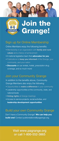 According to the National Grange press release, “this banner is easy to transport and is a perfect product to promote your Grange at events, such as fairs, festivals, open houses for upcoming Grange Month, and more.”